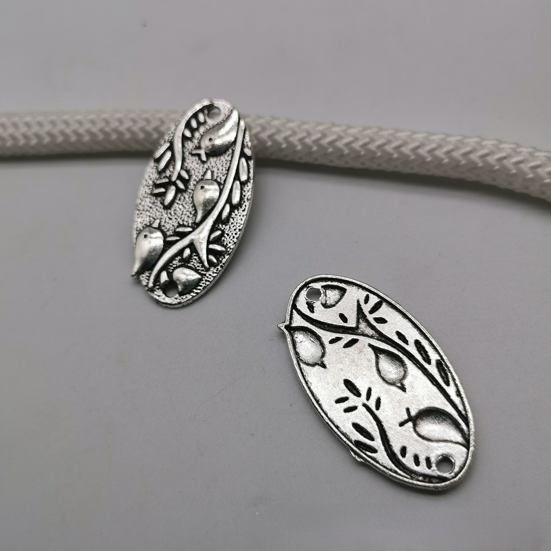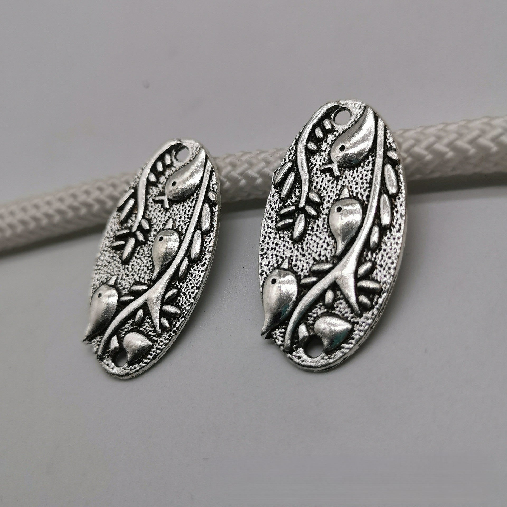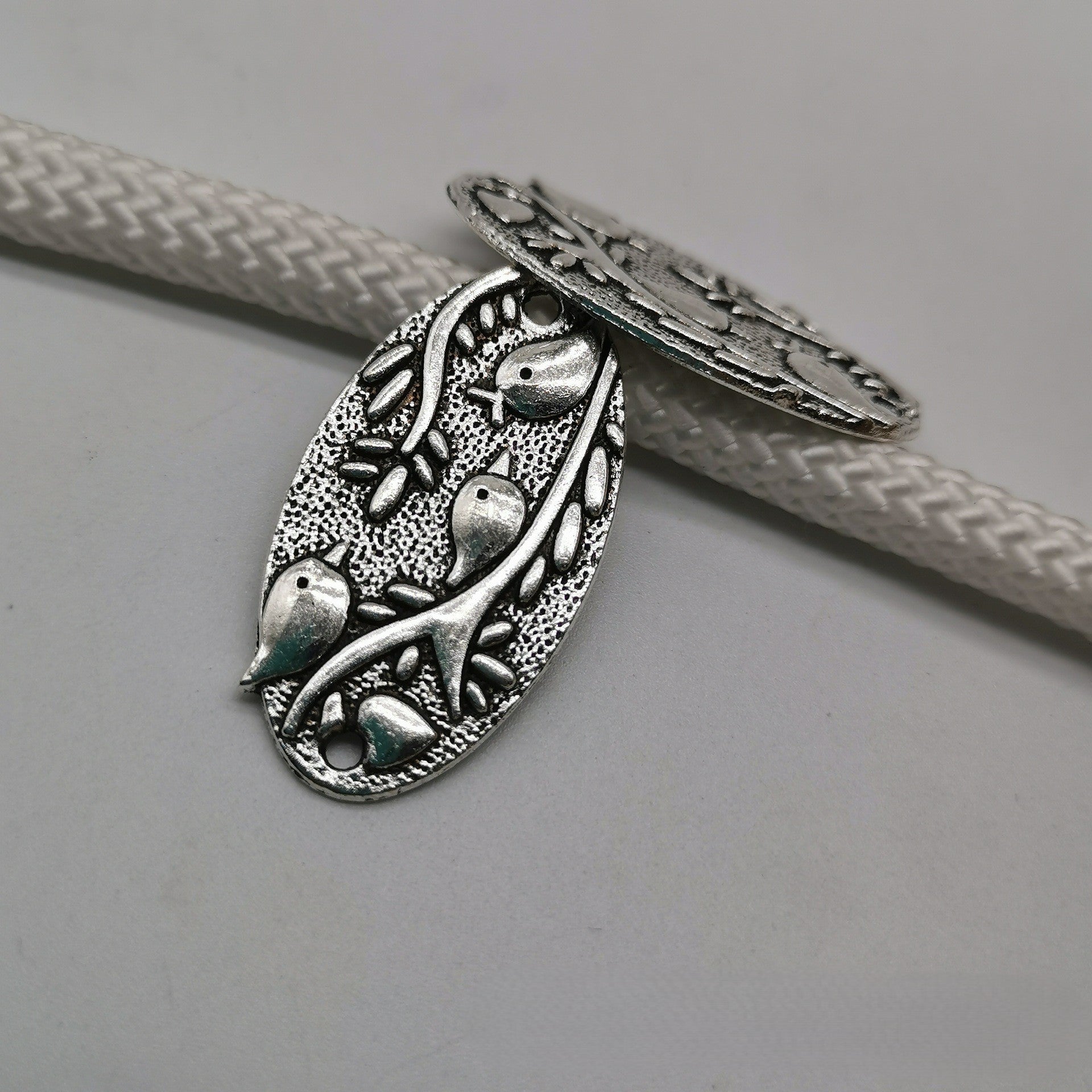 Antique silver Bird branch pendant with two holes, 37x20mm, 150pcs